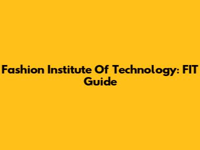 Fashion Institute Of Technology: FIT Guide