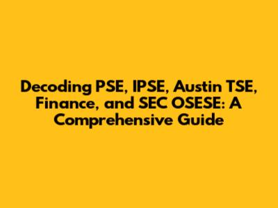 Hey guys! Ever stumbled upon terms like PSE, IPSE, Austin TSE, Finance, and SEC OSESE and felt like you were trying to decipher an alien language? Well, you're not alone! These acronyms and terms represent significant aspects of the financial world, and understanding them can empower you to make informed decisions. So, let's break it down in a way that's easy to grasp. This comprehensive guide will walk you through each term, providing clarity and practical insights. Whether you're a seasoned investor or just starting to explore the world of finance, this article aims to demystify these concepts and equip you with the knowledge you need to navigate the financial landscape with confidence. Let's dive in and unravel the complexities of PSE, IPSE, Austin TSE, Finance, and SEC OSESE together!