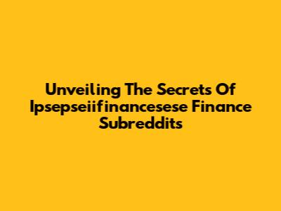 Unveiling The Secrets Of Ipsepseiifinancesese Finance Subreddits