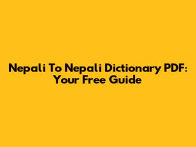 Nepali To Nepali Dictionary PDF: Your Free Guide