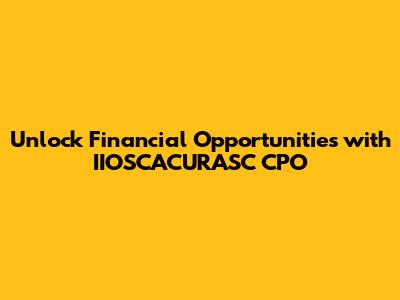 Key Financial Opportunities with IIOSCACURASC CPO