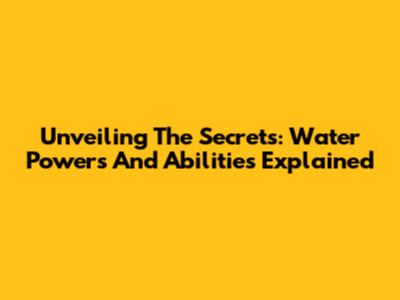 Unveiling The Secrets: Water Powers And Abilities Explained