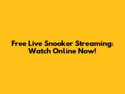 Free Live Snooker Streaming: Watch Online Now!