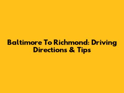 Baltimore To Richmond: Driving Directions & Tips