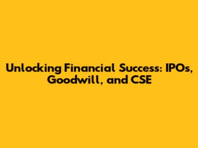 Hey there, finance enthusiasts! Ever wondered how the world of finance really works? It's a complex and fascinating realm, full of twists, turns, and opportunities. Today, we're diving deep into some key concepts: IPOs (Initial Public Offerings), Goodwill, and the CSE (presumably, the Canadian Securities Exchange, but the context doesn't specify). Buckle up, because we're about to embark on an exciting journey to understand these crucial elements and how they intertwine to shape financial landscapes. Let's get started, shall we?