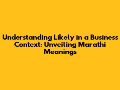 Hey there, business enthusiasts! Let's dive deep into the intriguing world of the Marathi language and how it helps us grasp the concept of "likely" in a business setting. Understanding the nuances of this word is super important for anyone aiming to thrive in the Marathi-speaking business landscape. We'll explore various Marathi translations, their implications, and how you can use them to boost your business strategies. Think of it as your secret weapon for success!