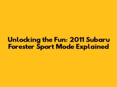 Hey guys! Ever wondered what that Sport mode button in your 2011 Subaru Forester actually does? Well, you're in the right place! We're diving deep into the world of Forester's Sport mode, exploring how it changes your driving experience and whether it's right for you. Get ready to learn all about this awesome feature and how it can spice up your daily commute or weekend adventures. This guide is designed to be your go-to resource, breaking down everything in a clear, easy-to-understand way. Let's get started!
