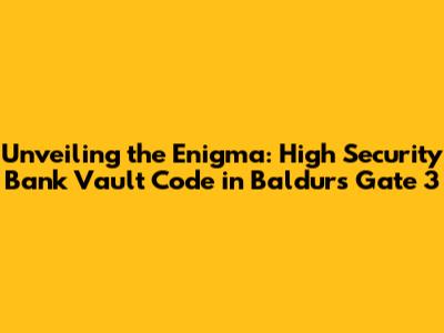 Alright, adventurers, let's talk about something seriously cool – cracking the high security bank vault code in Baldur's Gate 3 (BG3)! This isn't just about stumbling upon treasure; it's about diving deep into a world of intricate puzzles and hidden complexities. We're going to break down everything you need to know, from finding the vault to deciphering those tricky codes. Think of this as your ultimate guide to becoming a master vault cracker in the Forgotten Realms. Prepare yourselves, because we are diving into the heart of the mysteries that await within the vaults.