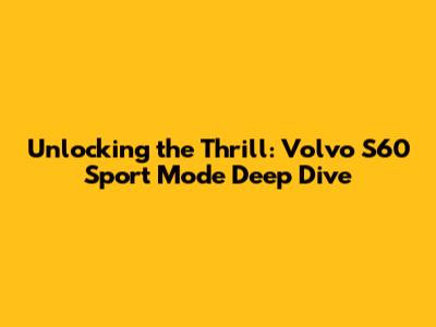 Hey car enthusiasts! Ever wondered about Volvo S60 Sport Mode and how it transforms your driving experience? Well, you're in the right place! Today, we're diving deep into the heart of the Volvo S60, specifically exploring the Sport Mode feature. We'll unravel what it does, how it works, and why it's a game-changer for anyone who loves a spirited drive. Get ready to learn everything you need to know to make the most of your S60's performance capabilities. So, buckle up, and let's get started!