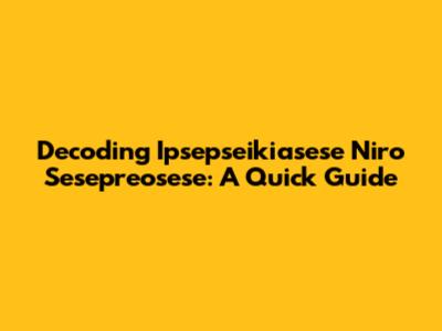 Decoding Ipsepseikiasese Niro Sesepreosese: A Quick Guide