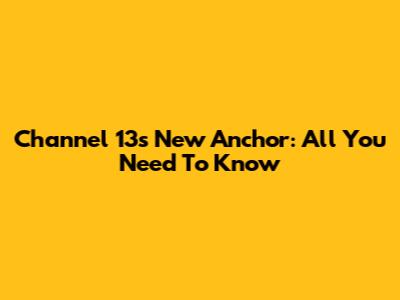 Channel 13's New Anchor: All You Need To Know