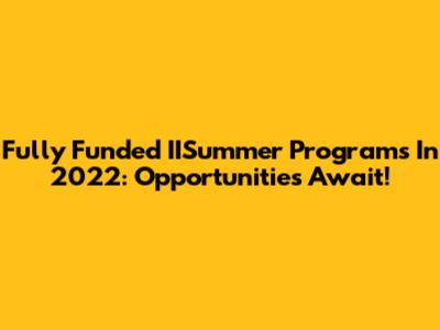 Fully Funded IISummer Programs In 2022: Opportunities Await!