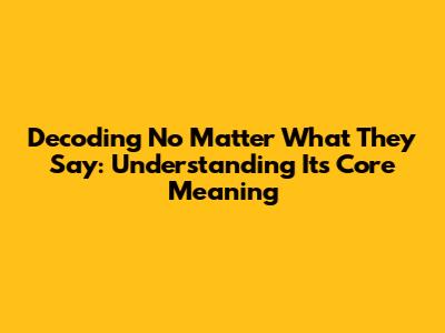 Alright, guys, let's dive into the nitty-gritty of the phrase "no matter what they say." This isn't just some random collection of words; it's a powerful statement loaded with meaning and intent. At its heart, it's about unwavering resolve and a commitment to action, regardless of external opinions, criticisms, or pressures. Think of it as your personal shield against the world's judgment. It's a declaration of independence for your thoughts, feelings, and decisions. It's about staying true to yourself, even when the chorus of dissenting voices gets loud. It's the linguistic equivalent of planting your feet firmly on the ground and saying, "I'm not budging." This phrase speaks volumes about inner strength, conviction, and a refusal to be swayed. Now, the beauty of "no matter what they say" is its versatility. You can use it in a variety of contexts, from personal relationships to professional endeavors. For example, if you're pursuing a dream, like starting your own business, and you face naysayers who doubt your abilities, you might say, "I'm going to launch this business, no matter what they say." It's your way of saying that the opinions of others won't deter you from your goals. Or, let's say you're in a relationship and face criticism from friends or family. You could declare, "I'm committed to this relationship, no matter what they say." This signifies that you prioritize your connection with your partner over external judgments. Ultimately, the essence of "no matter what they say" boils down to self-belief and resilience. It's a reminder that you have the power to chart your own course and that the opinions of others shouldn't dictate your path. It's a mantra for those who are brave enough to follow their hearts and pursue their passions, even when the road gets tough. The phrase encourages us to embrace our individuality and to stand tall in the face of adversity. It is a beacon of hope and a testament to the human spirit's remarkable capacity for resilience.