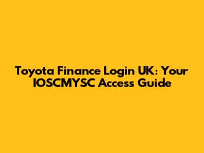 Toyota Finance Login UK: Your IOSCMYSC Access Guide
