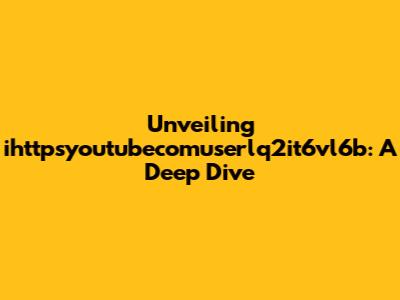 Hey everyone! Today, we're going to dive headfirst into the fascinating world of the YouTube channel ihttpsyoutubecomuserlq2it6vl6b. This channel has been making waves, and we're here to break down its content, strategies, and overall impact. We'll explore what makes it tick, what you can learn from it, and why it's worth your time. So, grab your popcorn, settle in, and let's get started!
