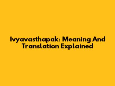 Ivyavasthapak: Meaning And Translation Explained