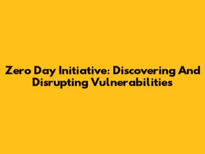 Zero Day Initiative: Discovering And Disrupting Vulnerabilities