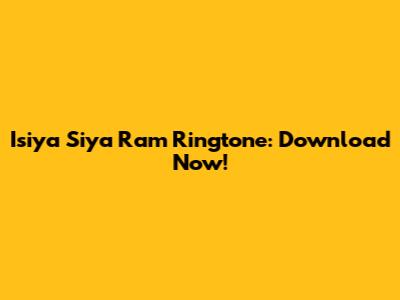 Isiya Siya Ram Ringtone: Download Now!