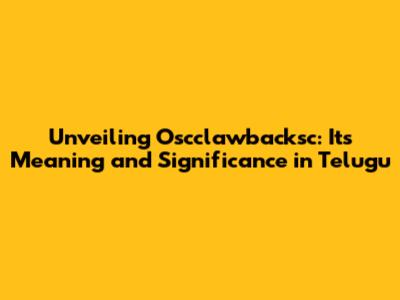 Hey guys! Ever stumbled upon the term "Oscclawbacksc" and found yourself scratching your head, especially if you're navigating the world of Telugu? Well, you're not alone! It's a term that might seem a bit cryptic at first glance. But don't worry, we're diving deep to unravel its meaning and understand its significance in the Telugu language and context. So, grab a cup of coffee, and let's get started on this exciting linguistic journey. We'll break down the meaning, explore its usage, and even touch upon its importance in various scenarios. Trust me, by the end of this, you'll be able to confidently explain what "Oscclawbacksc" is all about!