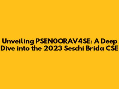 Hey guys! Let's dive deep into something that might sound like a secret code: PSEN0ORAV4SE 2023 Seschi Brida CSE. Sounds cryptic, right? Well, fear not, because we're going to break it down and see what this is all about. This isn't just a random string of characters and numbers; it's likely a reference to something specific, probably related to a project, a dataset, or some kind of technical event from 2023. "Seschi Brida CSE" seems like a key identifier here, potentially pointing to the organization, the specific area, or the field the topic covers. To crack this code and truly understand its meaning, we need to consider several possibilities and search for more context. Let's dig in and figure out what the PSEN0ORAV4SE 2023 Seschi Brida CSE is all about.