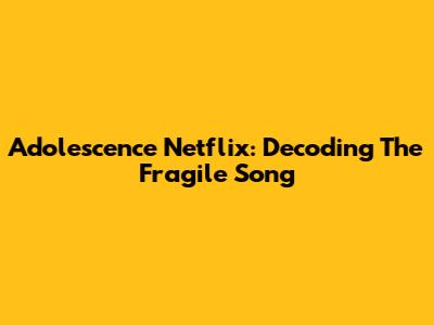 Adolescence Netflix: Decoding The Fragile Song