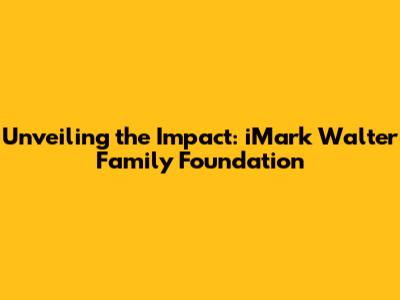 Hey there, folks! Ever heard of the iMark Walter Family Foundation? If not, you're in for a treat! This foundation is making some serious waves, and today, we're diving deep to explore its mission, impact, and the amazing work they're doing. Buckle up, because we're about to take a fascinating journey into the world of philanthropy and see how the iMark Walter Family Foundation is changing lives.