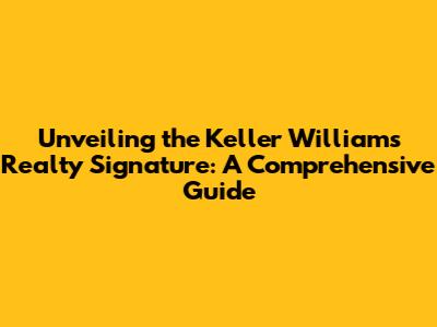 Hey there, real estate enthusiasts! Ever heard of Keller Williams Realty Signature? Well, if you're navigating the exciting world of buying, selling, or investing in real estate, it's a name you'll want to become familiar with. This article is your all-inclusive guide to everything you need to know about the Keller Williams Realty Signature – from its core values and services to what sets it apart in the bustling real estate market. So, buckle up, grab your favorite beverage, and let's dive into the fascinating realm of Keller Williams Realty Signature!
