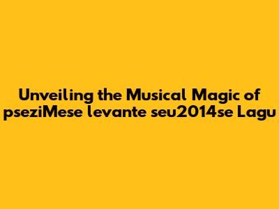 Hey music lovers! Ever stumbled upon a song that just grabs you, pulling you into its world? Well, today, we're diving deep into the captivating realm of pseziMese levante seu2014se Lagu. This isn't just a song; it's an experience, a journey, a feeling. Let's unpack what makes this musical gem so special, shall we?