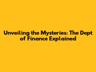 Understanding the Core Functions of the Dept of Finance