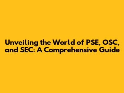 Hey there, fellow knowledge seekers! Ever stumbled upon acronyms like PSE, OSC, and SEC and wondered what in the world they mean? Well, buckle up, because we're about to dive deep into these fascinating realms! This guide is your one-stop shop for understanding these important entities, breaking down their roles, and highlighting their significance in the grand scheme of things. Get ready to have your questions answered and your curiosity piqued!