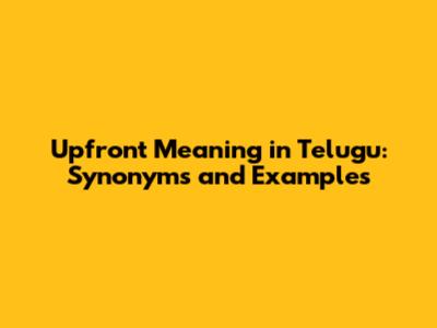 "Upfront" in Telugu: The Core Meaning