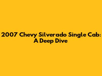 2007 Chevy Silverado Single Cab: A Deep Dive
