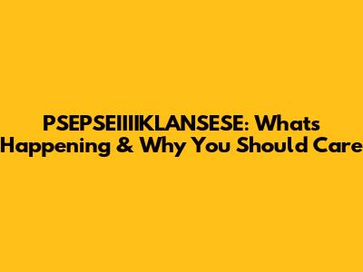 PSEPSEIIIIKLANSESE: What's Happening & Why You Should Care