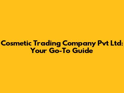 Cosmetic Trading Company Pvt Ltd: Your Go-To Guide
