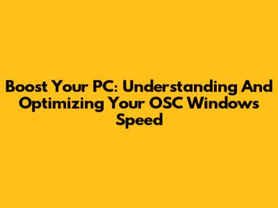 Boost Your PC: Understanding And Optimizing Your OSC Windows Speed