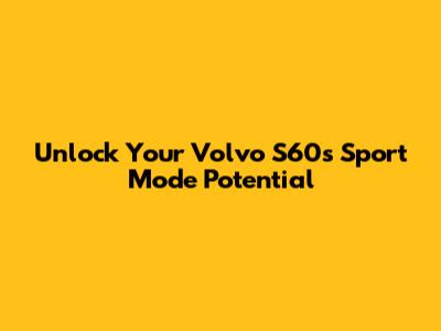 Unlock Your Volvo S60's Sport Mode Potential