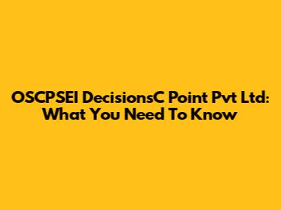 OSCPSEI DecisionsC Point Pvt Ltd: What You Need To Know