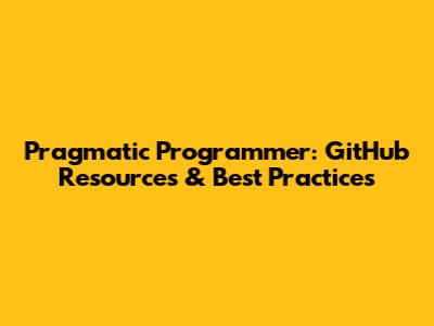 Pragmatic Programmer: GitHub Resources & Best Practices