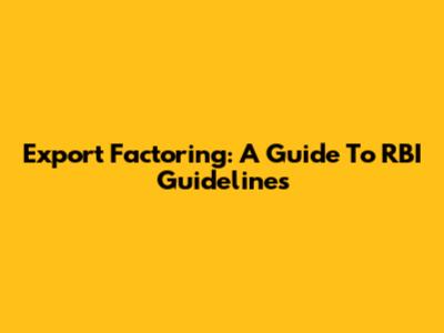 Export Factoring: A Guide To RBI Guidelines