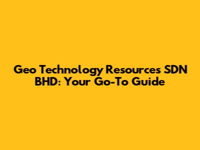 Geo Technology Resources SDN BHD: Your Go-To Guide