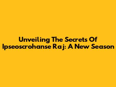 Unveiling The Secrets Of Ipseoscrohanse Raj: A New Season